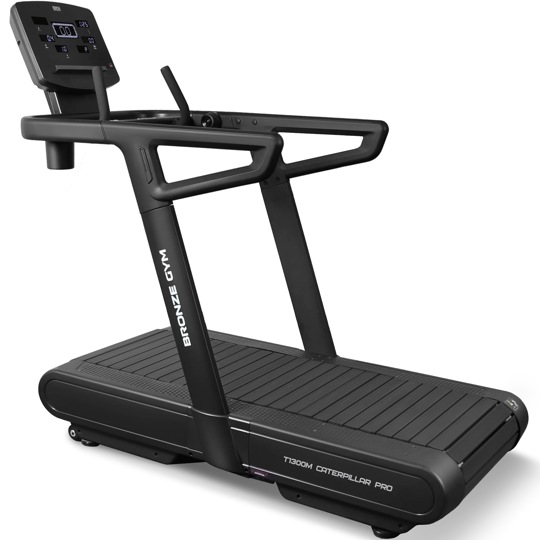 T1300M CATERPILLAR PRO – флагманская профессиональная беговая дорожка от немецкого бренда Bronze Gym. Предназначена для использования в коммерческих фитнес-клубах с большим потоком клиентов, а также для серьезных спортивных подготовок профессиональных спортсменов и спортивных клубов. Конструкция модели рассчитана на тяжелые коммерческие условия эксплуатации в режиме 24/7. Беговая дорожка тяжелая, вес оборудования составляет 191 кг и способна выдерживать вес пользователя до 180 кг.
