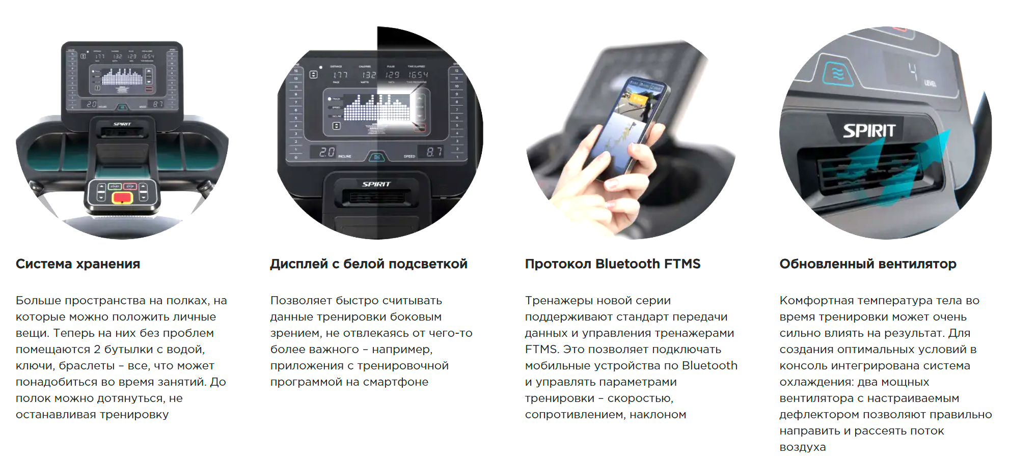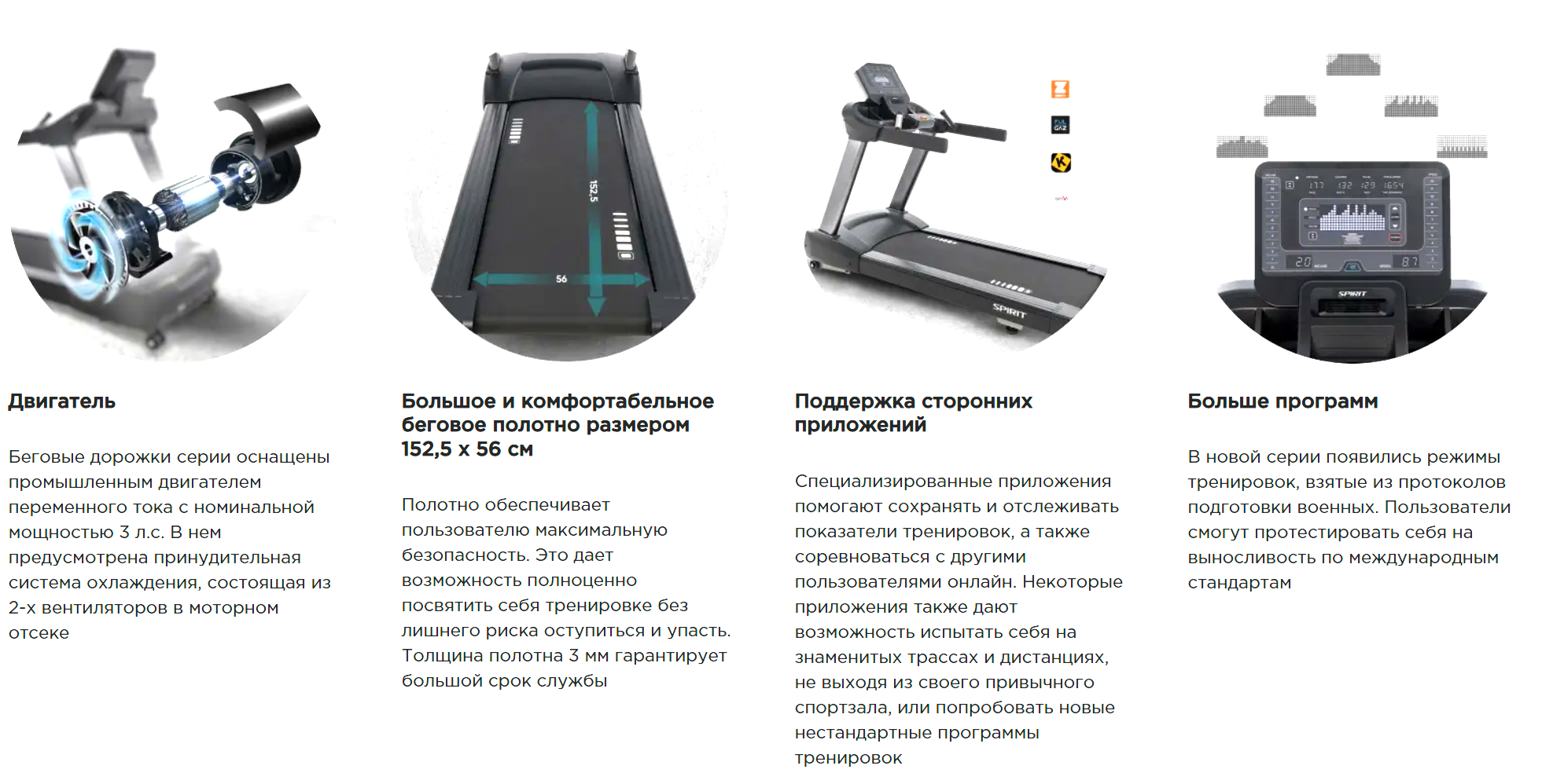 Профессиональная беговая дорожка SPIRIT CT800+ соответствует всем требованиям профессионального пользователя. Один из главных элементов тренажера — это двигатель, производитель предлагает мотор переменного тока с системой управления DY-AC drive номинальной мощностью 3,0 л.с. Двигатель переменного тока (AC) оснащен системой с защитой от перегрузки и блоком предварительного охлаждения. Программный модуль нового поколения имеет 10 высокоэффективных тренировочных программ, среди которых: ручной режим, холмы, сжигание жира, 2 пульсозависимые программы. Дисплей консоли беговой дорожки оснащен большим графическим LED дисплеем с приятным цветом свечения светодиодов. Также на консоли расположены 4 цифровых LED дисплеев с ярким свечением. Сенсорные датчики измерения пульса расположены на эргономичных рукоятках + телеметрия. Цифровая система измерения пульса имеет повышенную по сравнению с предыдущим поколением дорожек помехоустойчивость. Толщина полотна 3 мм. Полотно коммерческое Habasit, двухслойное с нижним слоем удерживающим смазку. Дека нового поколения — Ultimate DeckTM толщиной 25 мм (парафинированная). Амортизационная платформа Ultimate Deck SpringTM — новый стандарт комфорта, надежности и долговечности. Беговое полотно: коммерческое, двухслойное Habasit — одно из самых прочных и долговечных полотен в мире. Алюминиевые боковые накладки корпуса — для высокой надежности и долговечности. Небольшая высота беговой поверхности от поверхности пола — всего 18 см.