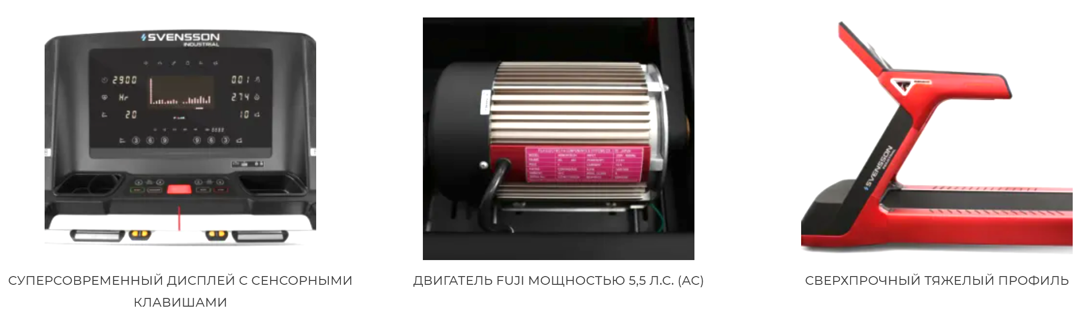 - Проверенный и надежный двигатель (от японской Fuji) обеспечит высокую частоту вращений, такая особенность гарантирует ровное движение полотна беговой дорожки на любых скоростях, а также предотвращает перегрев.