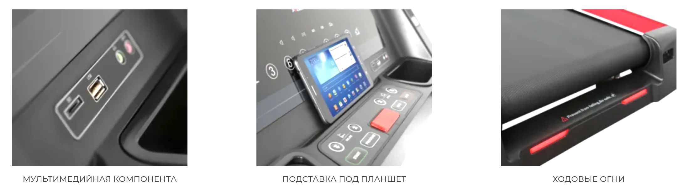 - Тренажер оснастили "ходовыми огнями", которые расположили по бокам и сзади спортивного оборудования. Такая ярко-красная подсветка показывает пользователю о том, что тренажер находится в рабочем режиме. Ключ аварийной остановки также подсвечивается красным цветом.