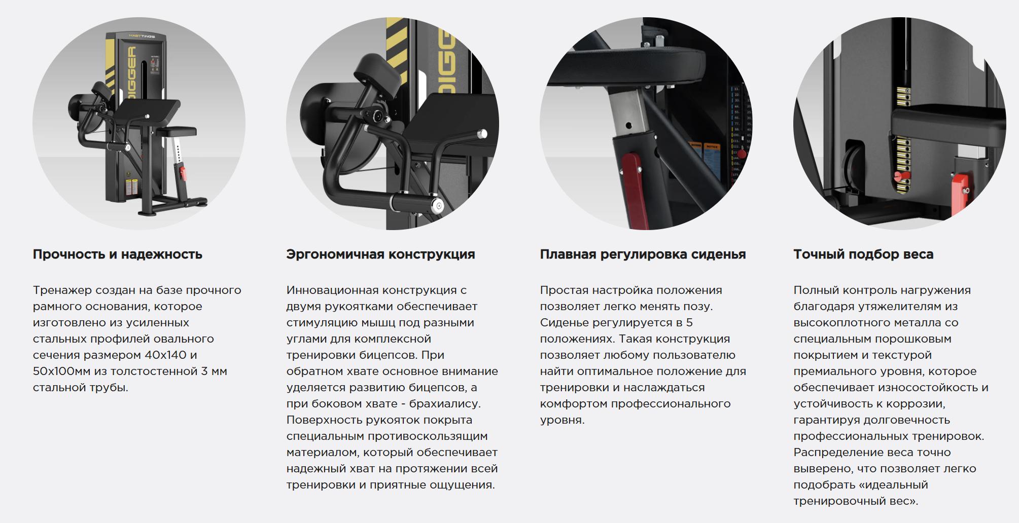 Бицепсы участвуют практически во всех упражнениях на верхнюю часть тела, но для прогрессивного роста они нуждаются в концентрированной нагрузке, интенсивной изолированной работе, в которой будут исключены мышцы помощники. Тщательно проработанная конструкция тренажера обеспечивает оптимизированную биомеханику для максимальной результативности тренировок.