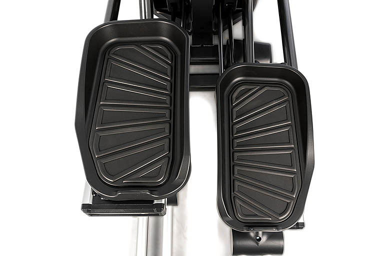 - Педали эллиптического тренажёра имеют угол наклона 2° (вовнутрь). Такая особенность позволяет становиться стопе спортсмена в эргономическую позицию.