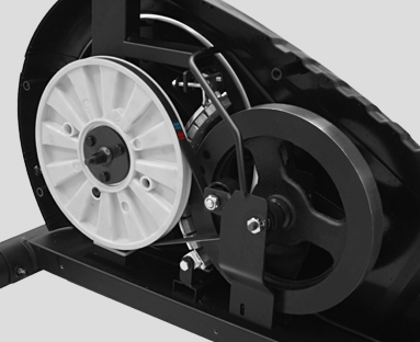 Приводная система тренажера – это сложный комплекс механических и биомеханических решений. За плавное скольжение при тренировках отвечает электромагнитная система нагружения класса А SpinMaster EMS, трехкомпонентный педальный узел с увеличенной длиной шага body-Glide вместе с маховиком, инерционный вес которого равен 22 кг. Для узлов и сочленений использованы подшипники и втулки шведского производства SKF.
