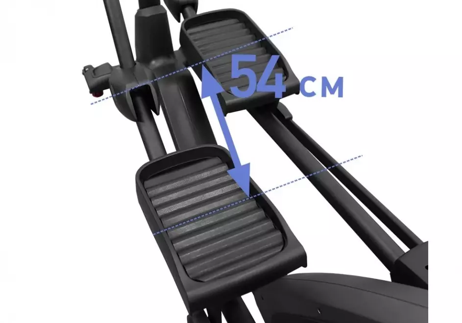 - Чтобы обеспечить тренировки высокоэффективным, и комфортным уровнем производитель установил оптимальную для этого длину шага (54 см).