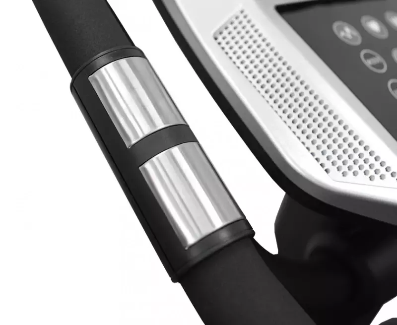 - Тренажер имеет сенсорные датчики пульса, они помогут считывать работу сердца, это важно при пульсозависимом тренинге.