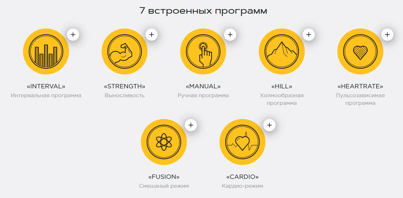 2 H.R, Hill, Fat Burn, Cardio, Strength, Interval, Custom, Fit Test and Manual
