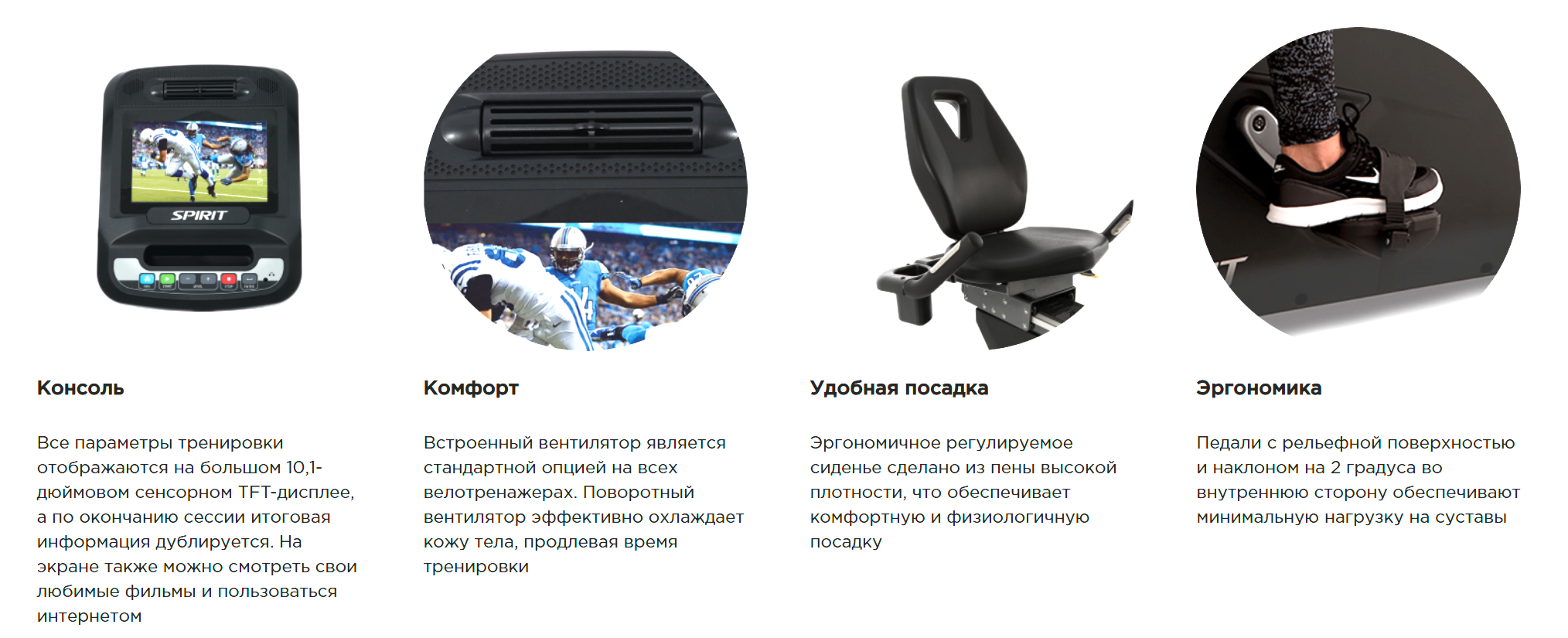 Горизонтальный велотренажер SPIRIT CR900ENT создан специально для фитнес-центров с большой проходимостью. В отличии от младшей модели, CR900ENT оснащён инновационной консолью. Сиденье тренажера легко регулируется под любой рост, а надежные ремешки на педалях легко зафиксируют ваше положение. Педали с внутреннем углом наклона в 2 градуса добавят ту толику комфорта, что обычно не хватает на других моделях. Смотрите, сёрфите в интернете и слушайте музыку, не отвлекаясь от тренировки!