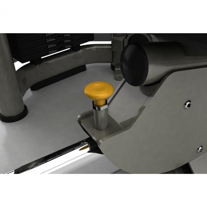 Сдвижные грузы для пошагового изменения веса легко доступны из положения, в котором выполняется упражнение, и уменьшают беспорядок на площадке клуба.