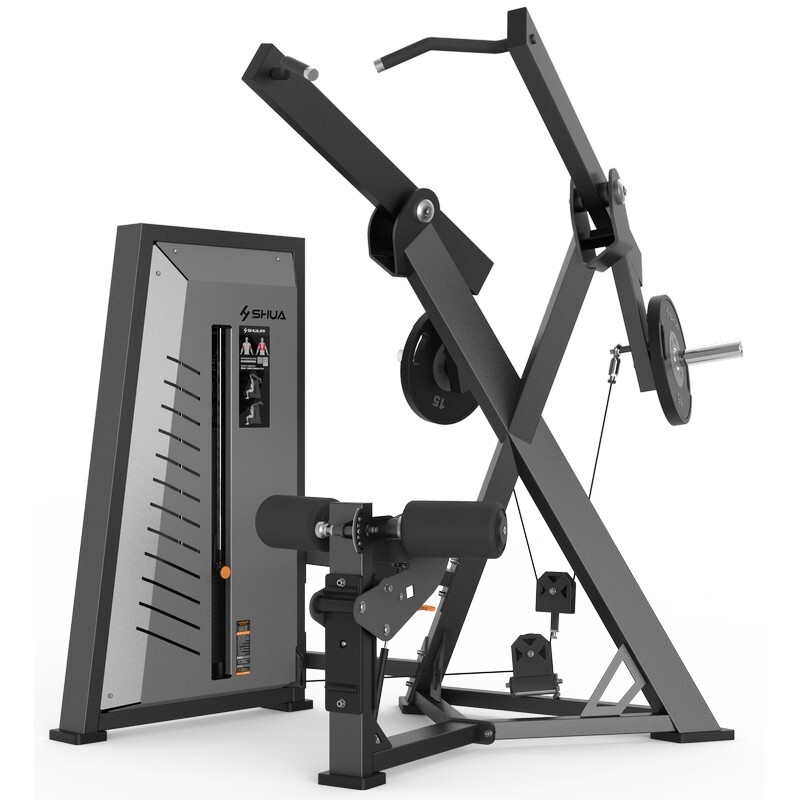 Гребля сидя SHUA SH-G7704 уникальный тренажер от всемирно известного производителя профессионального силового оборудования. Уникальность его состоит в том, что блочный тренажер со встроенным 100 кг стеком может дополнительно нагружаться олимпийскими дисками. Для этого его рычаги оборудованы прочными хромированными втулками для дисков.