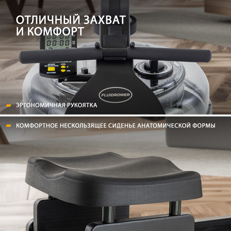 Непревзойденный дизайн гребного тренажера Apollo Plus Black подчеркивает комбинированная рама из стали и массива американского ясеня высшего сорта, тонированного в черный цвет. Гребной тренажер Apollo Plus Black прекрасно впишется в интерьер как дома, так и небольшой фитнес студии.