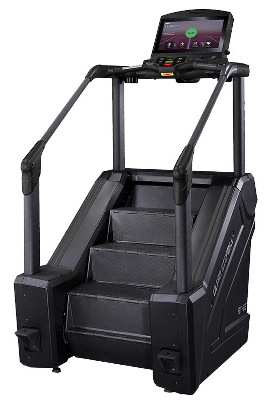 Профессиональный тренажер-лестница с 18,5 дюймовым HD TFT-LCD дисплеем с технологией тачскрин. Электромотор мощностью 2 л.с, компактный дизайн, 20 уровней нагрузки, 14 программ с виртуальными ландшафтами, поддержка нагрудного кардиодатчика, USB для зарядки, Wi-Fi, Ethernet.