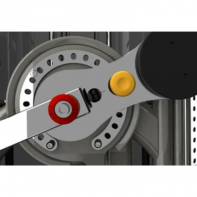 Сдвижные грузы для пошагового изменения веса легко доступны из положения, в котором выполняется упражнение, и уменьшают беспорядок на площадке клуба.