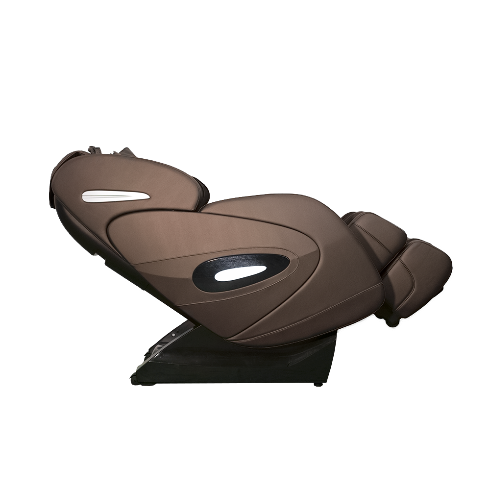Кресло обтянуто прочной и приятной на ощупь экокожей. Его особенностью является SL-образная каретка длиной 135 см, которая позволяет массажным роликам охватить максимально возможную область тела. При этом выступ роликов равен 12 см, что обеспечивает уникальную глубину и точность массажа.