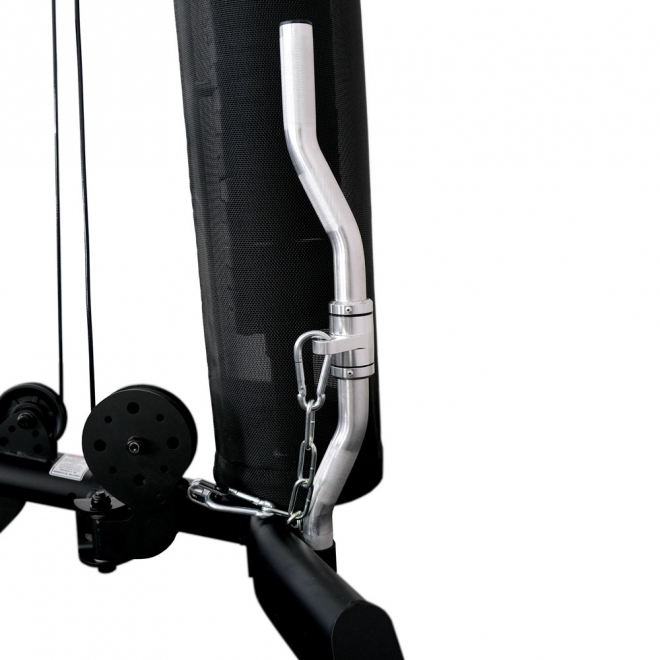 В комплекте гриф, трос с ручками на роликовом механизме, секция для упражнений на ноги, маленький гриф. Все секции можно использовать без дополнительного присоединения.