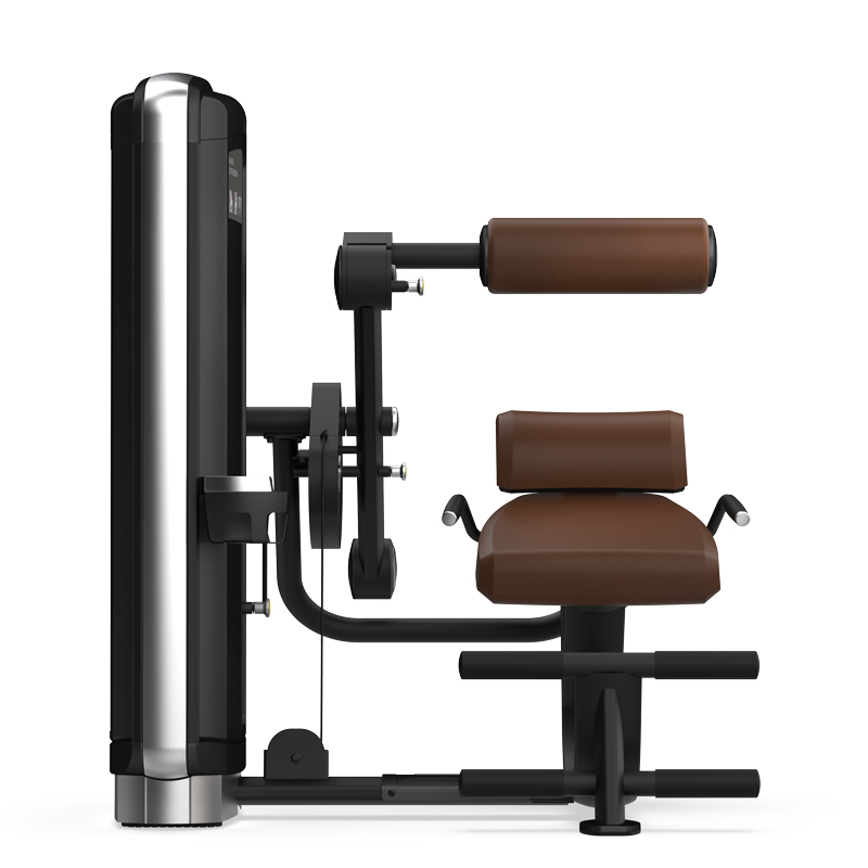 - Кулачковый механизм с колоколообразным профилем сопротивления создает максимальную нагрузку при угле сгибания бедра 30° — когда мышцы-разгибатели находятся в самой сильной фазе, после чего нагрузка плавно снижается к концу амплитуды движения. Это исключает риск перегрузки позвоночника в начальной и конечной фазах упражнения.