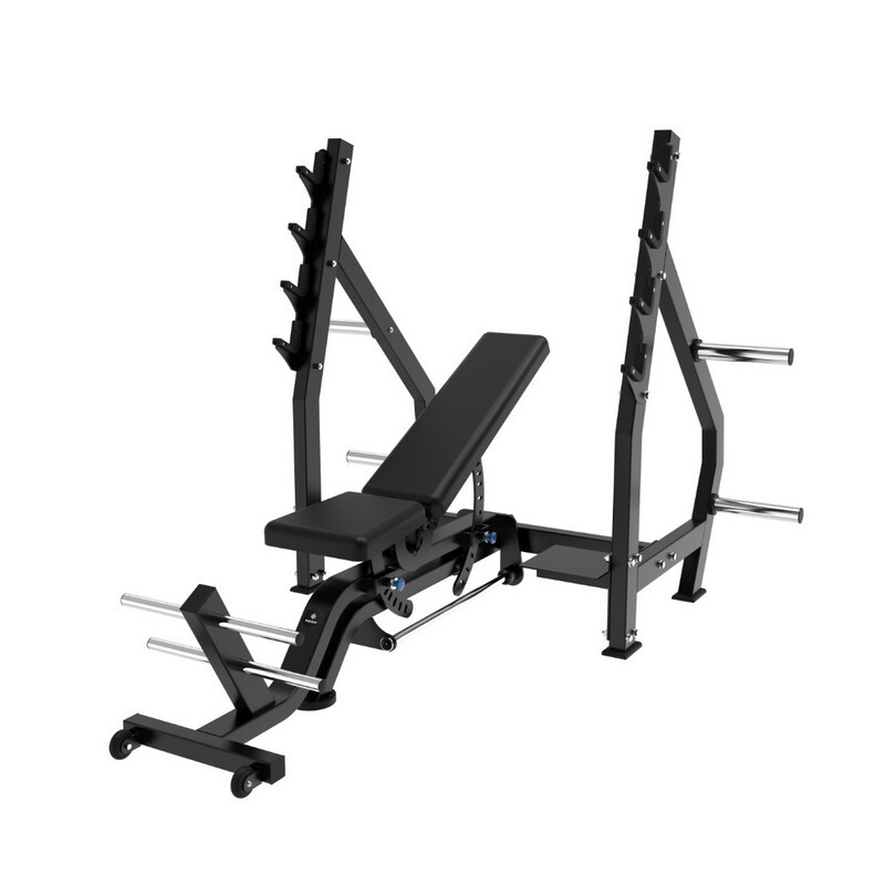 Скамья для жима с изменяемым углом наклона сиденья и спинки Insight Fitness DZ98 подходит для профессионального использования. Угол скамьи регулируется от отрицательного угла 11 градусов до положительного 60 градусов.