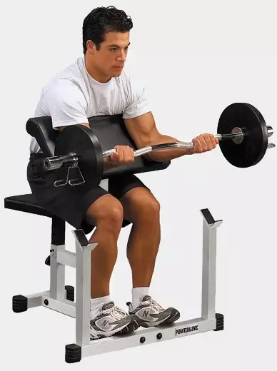 Скамья Скотта Powerline PPB32 от компании Body Solid выполнена из прочной рамы из стали. Заниматься можно с утяжелением до 136 килограмм (это не учитывая вес самого атлета). Сиденье очень широкое, по высоте можно регулировать в 5-ти положениях.