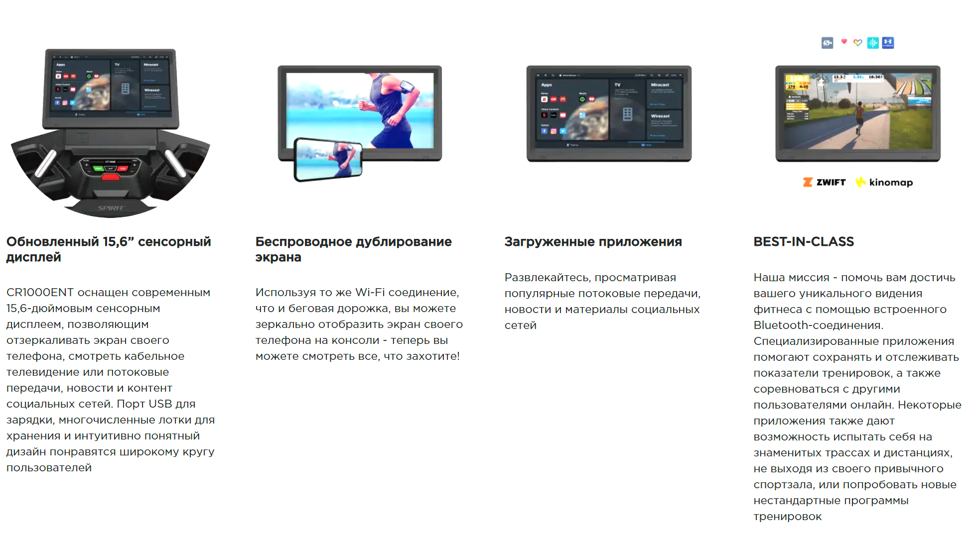 Модель получила впечатляющий 15,6-дюймовый сенсорный экран с кристальным чистым изображением, высокой чувствительностью к прикосновению и быстрым откликом. Дисплей оперативно выдает все параметры Вашей тренировки, что дает возможность своевременно корректировать темп и нагрузку. Функционал насыщен развлекательными опциями: от предустановленных приложений до дублирования экрана вашего устройства и прямого подключения через HDMI.