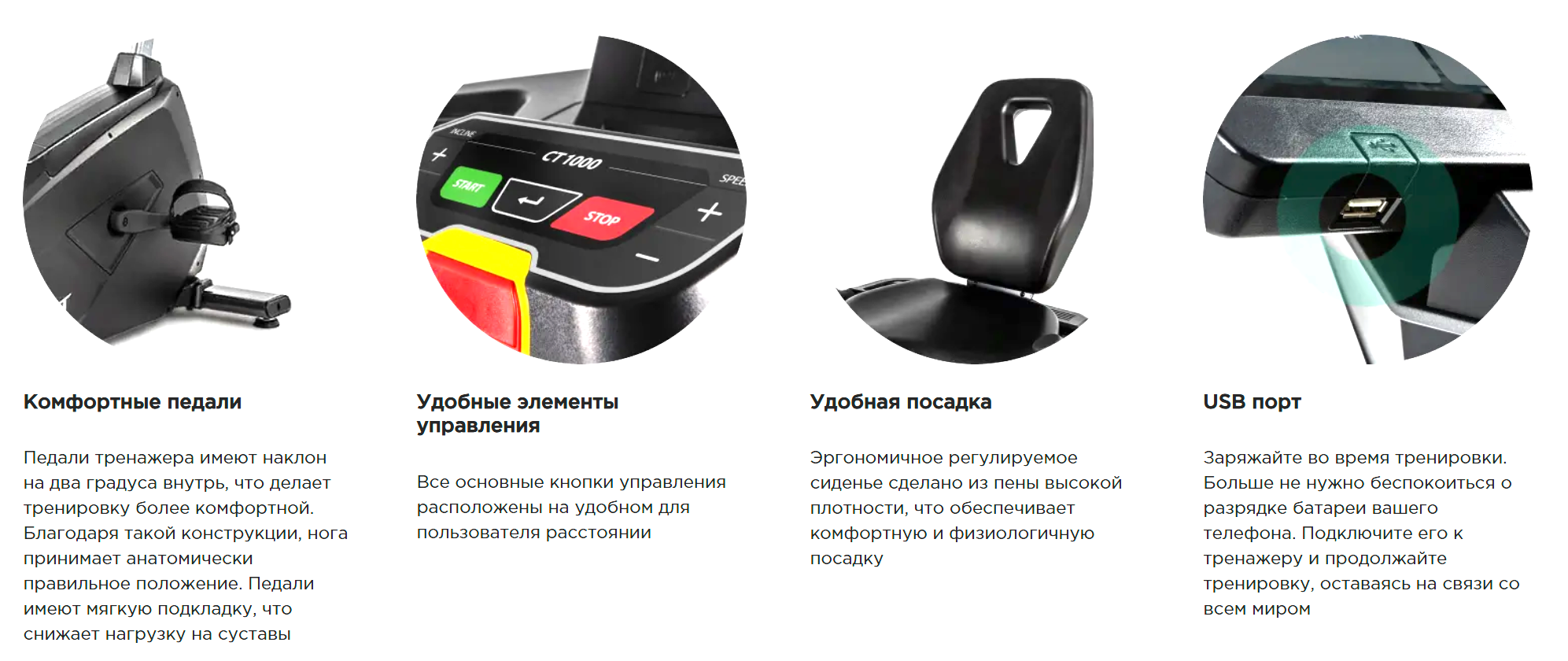 Вы легко можете отрегулировать сиденье по горизонтали, а надежные ремешки — фиксаторы на педалях, позволят быстро и легко начать тренировку. Бесшумная работа всего механизма и широкий восьмижильный поликлиновый ремень создаёт плавную и комфортную тренировку. Плавный ход педалей обеспечивает конструкция кривошипа и подшипники в подвижных узлах.