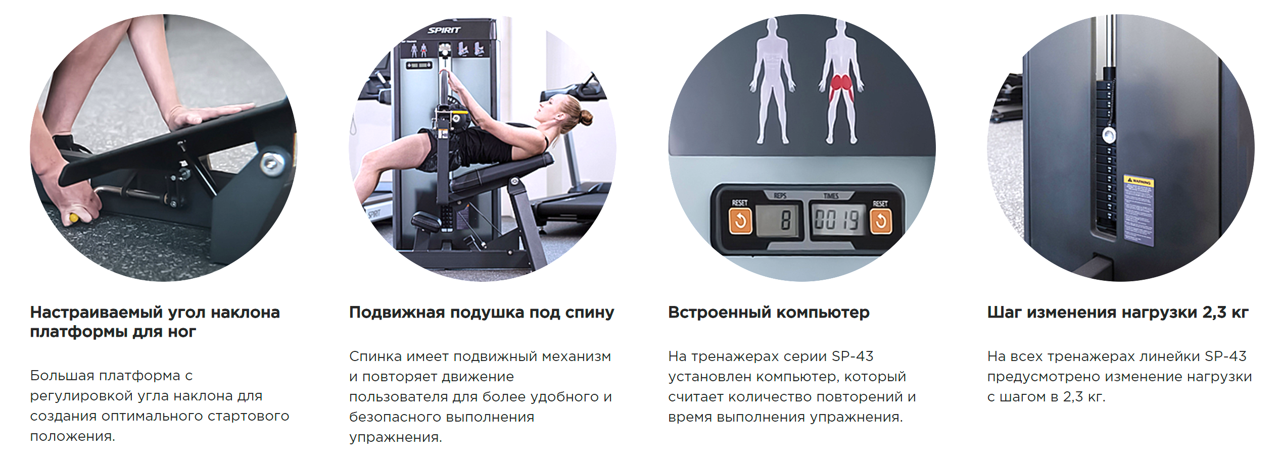 - Эффективная проработка мышц. Тренажер Spirit SP-4315 разработан для целенаправленной работы с мышцами внешней и внутренней поверхности бедер. Оптимизированная биомеханика помогает пользователям достигать максимальных результатов за короткое время.