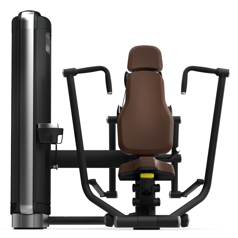 - Точная инженерная проработка конструкции обеспечивает безопасность и эффективность тренировок грудных мышц. Уникальная восходящая траектория движения рычагов снижает нагрузку на плечевые суставы во время упражнения.