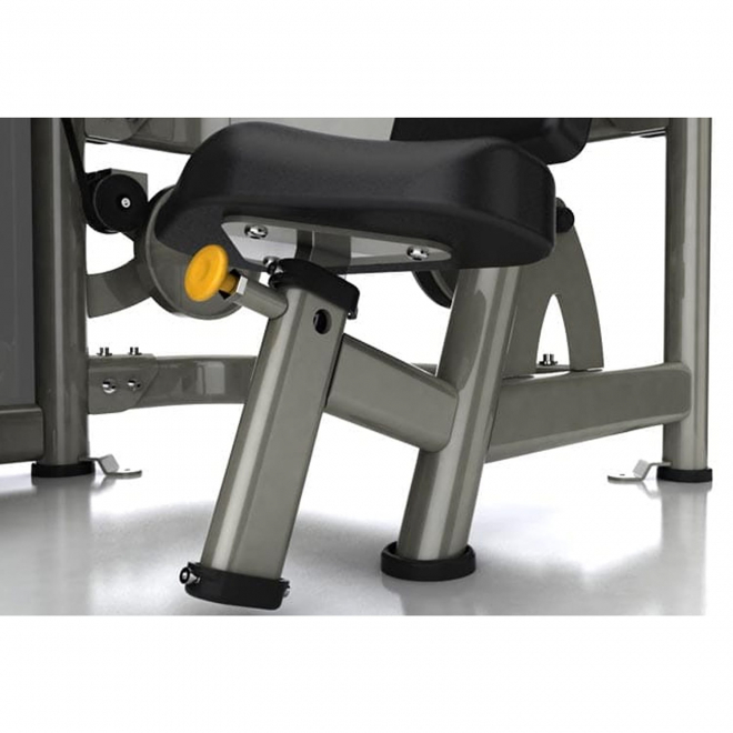 Сдвижные грузы для пошагового изменения веса легко доступны из положения, в котором выполняется упражнение, и уменьшают беспорядок на площадке клуба.